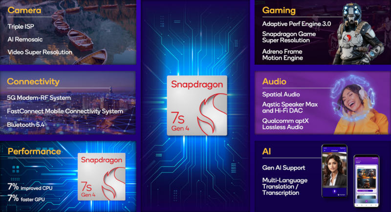 Sələfinin buraxılmasından təxminən bir il sonra Qualcomm orta səviyyəli cihazlar üçün yeni Snapdragon 7s Gen 4 çipini təqdim etdi.O süni intellektə dəstəyi saxlayır, həmçinin daha sürətli CPU və GPU-ya malikdir.